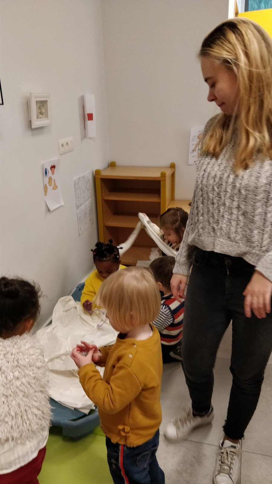 We houden een gezamenlijke instap rond het verhaal 'Wij gaan op berenjacht'. In mijn koffer zitten allerlei attributen die terugkomen in het verhaal. Ik stel ze aan de kinderen voor. Nadien luisteren we naar het verhaal, gebracht met Kamishibai. In de klas verrijken we de hoekjes rond alles wat met beren te maken heeft. De keuken maakt plaats voor een grot! De ouders van Mar brachten een hele grote beer mee! Dolle pret in onze grot! Een thematafel waarin alle scènes uit het verhaal nagespeeld kunnen worden. Ringsjablonen en veters. Puzzels rond beren. Sorteerbeertjes Vrij tekenen rond het verhaal. Oefening baart kunst. Wat een prachtige beren worden er getekend! We schilderen heel geleid een beer! Stap voor stap. 🐻 In het verhaal gaan de personages een avontuur tegemoet en komen ze allerlei dingen tegen: Wij gaan op berenjacht. We gaan een hele grote vangen. Wat een prachtige dag. Wij zijn niet bang! Ohnee.. gras! Lang, wuivend gras. We kunnen er niet bovenover. We ku...