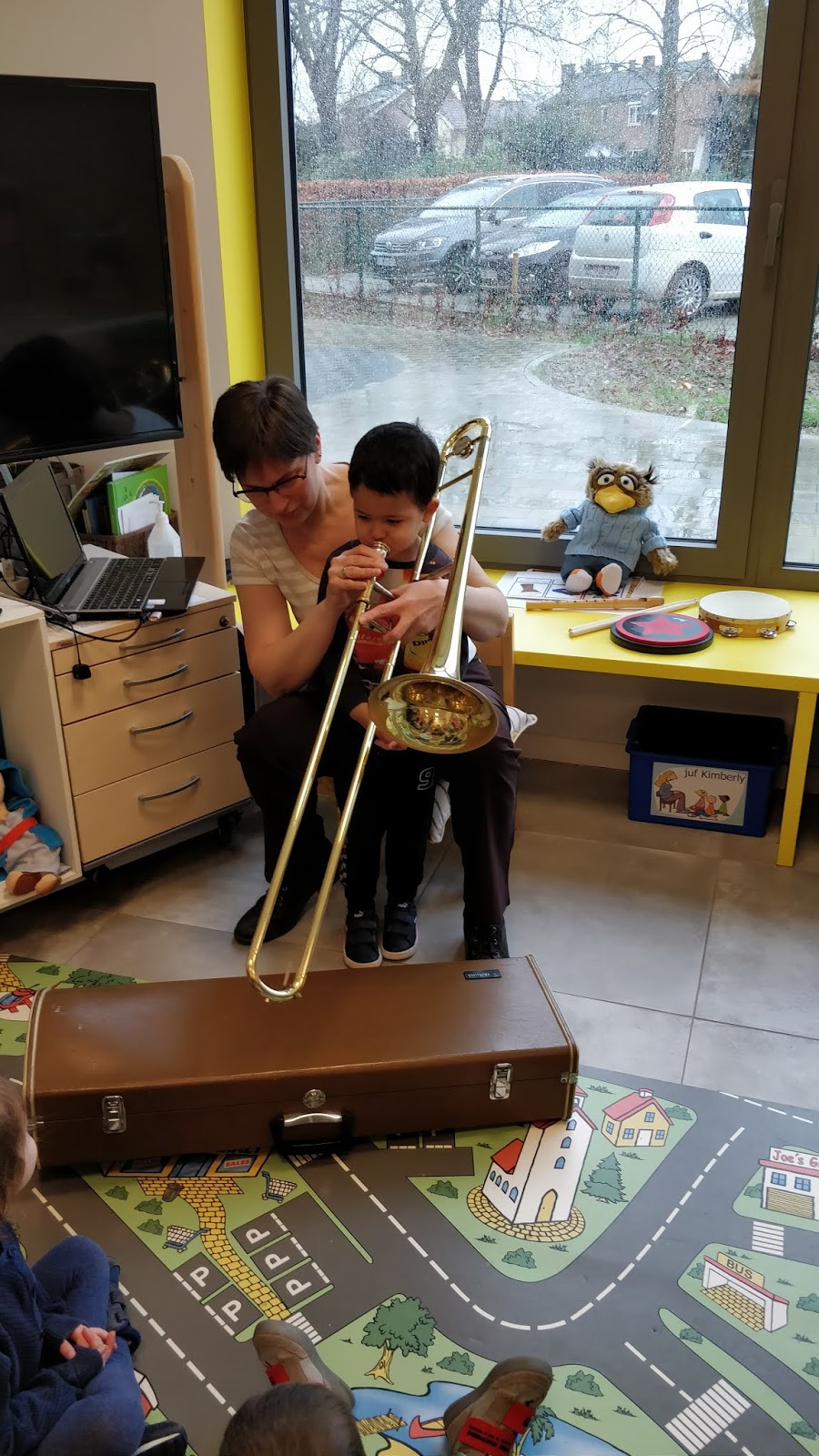 Juf Goedele bracht enkele muziekinstrumenten mee die we mochten waarnemen!