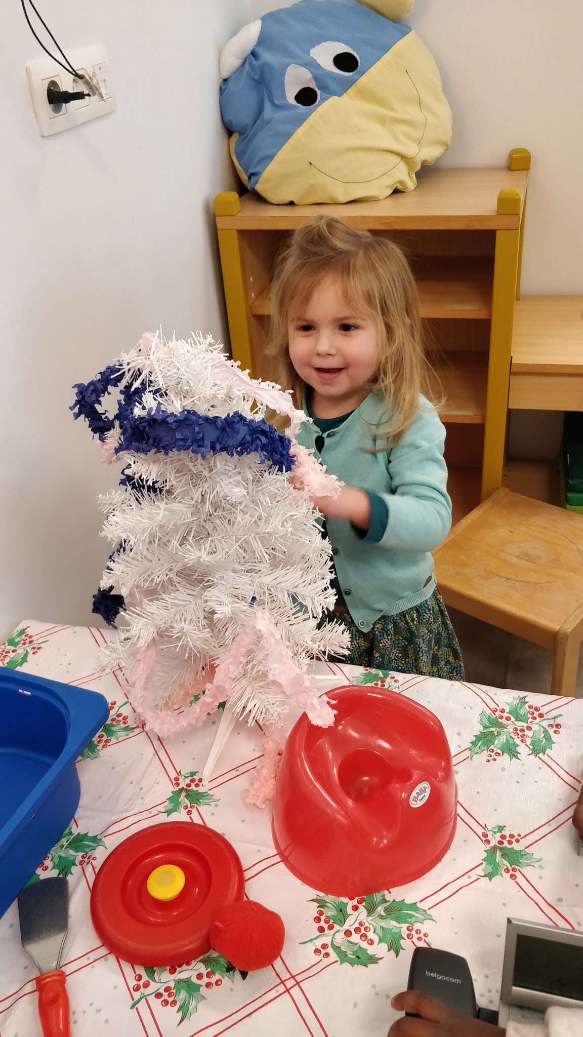 Een kerstboom mag ook niet ontbreken in de poppenhoek! Deze kunnen we versieren met slingers.