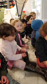 In de zaal stond een hele mooie Iglo dankzij juf Greet! Wij mochten er gebruik van maken om er een verhaaltje te lezen: 'Jules in de winter'