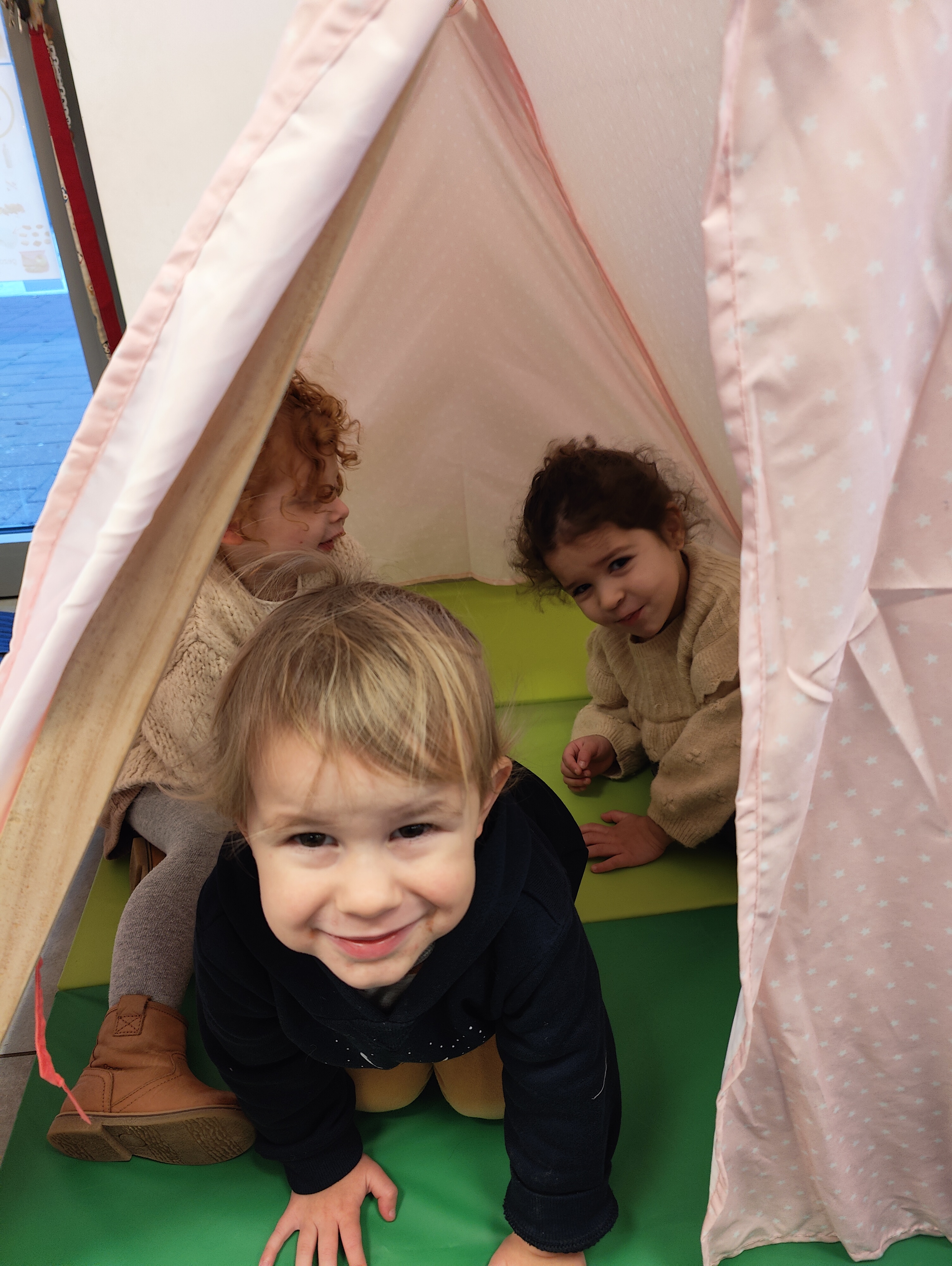We houden een gezamenlijke instap rond het verhaal 'Wij gaan op berenjacht'. In mijn koffer zitten allerlei attributen die terugkomen in het verhaal. Ik stel ze aan de kinderen voor. Nadien luisteren we naar het verhaal, gebracht met Kamishibai. In de klas verrijken we de hoekjes rond alles wat met beren te maken heeft. De keuken maakt plaats voor een grot! De ouders van Mar brachten een hele grote beer mee! Dolle pret in onze grot! Een thematafel waarin alle scènes uit het verhaal nagespeeld kunnen worden. Ringsjablonen en veters. Puzzels rond beren. Sorteerbeertjes Vrij tekenen rond het verhaal. Oefening baart kunst. Wat een prachtige beren worden er getekend! We schilderen heel geleid een beer! Stap voor stap. 🐻 In het verhaal gaan de personages een avontuur tegemoet en komen ze allerlei dingen tegen: Wij gaan op berenjacht. We gaan een hele grote vangen. Wat een prachtige dag. Wij zijn niet bang! Ohnee.. gras! Lang, wuivend gras. We kunnen er niet bovenover. We ku...